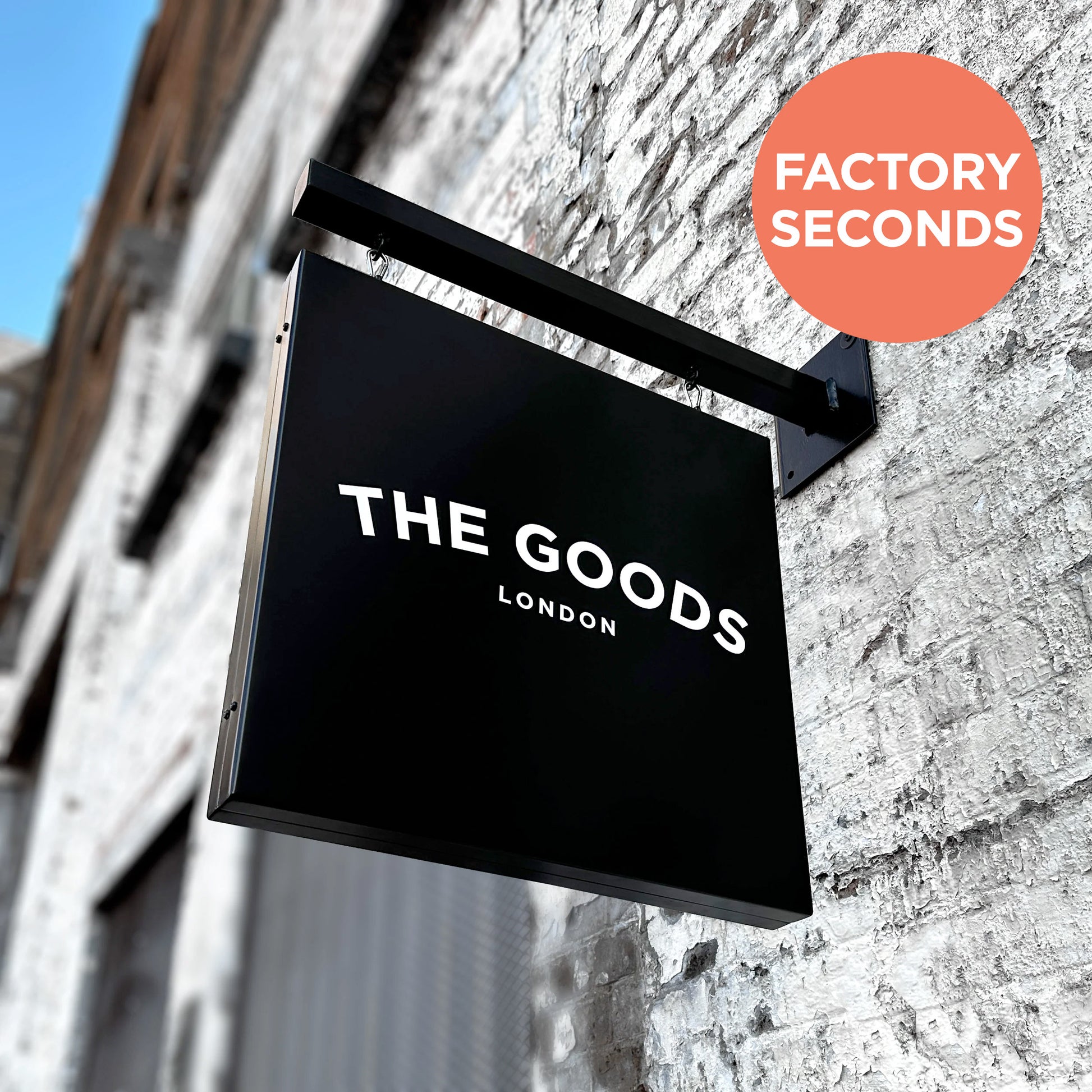 This is the double-sided version of our hanging sign (also called projected signs or hanging swing signs), this minimalist design is great for shops, bars, and restaurants.